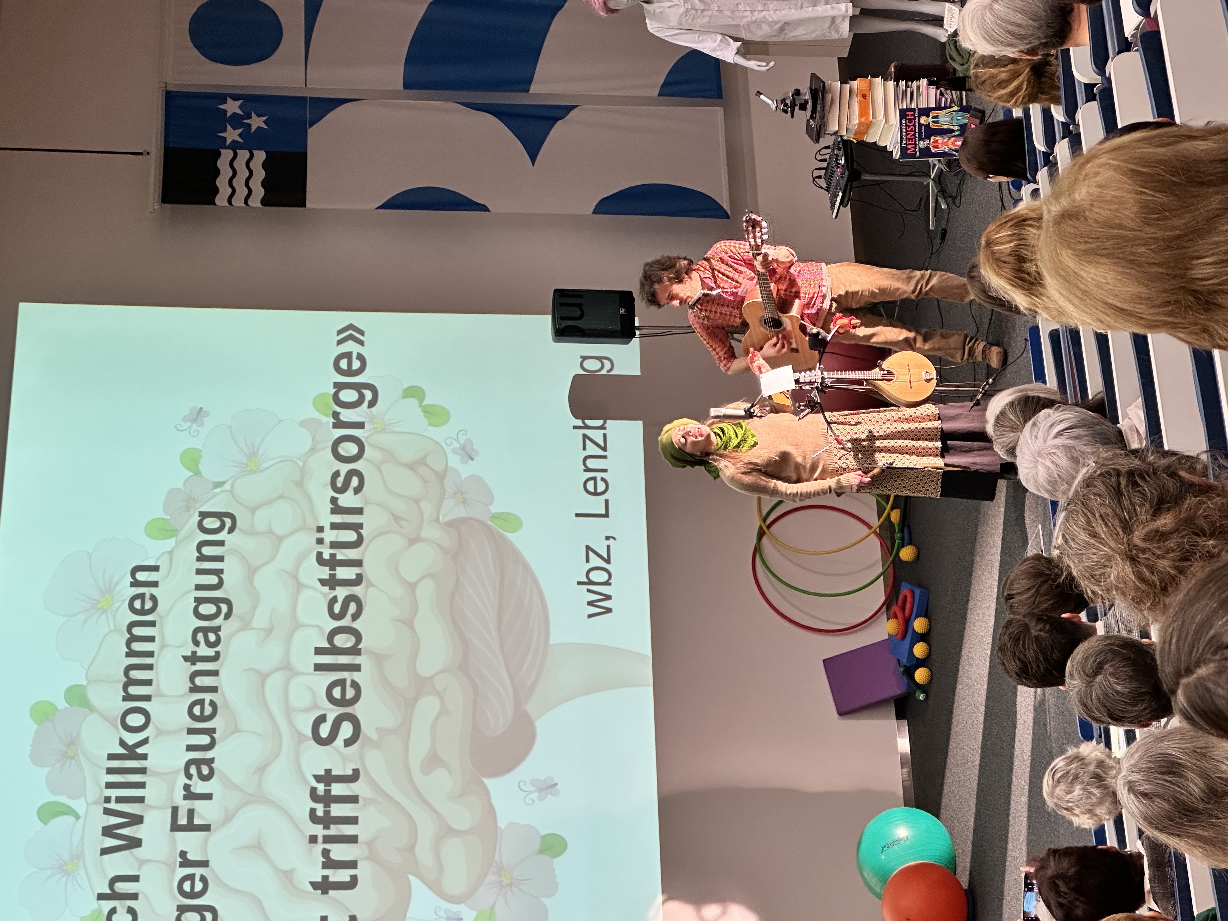 An der 38. Lenzburger Frauentagung im Weiterbildungszentrum wbz in Lenzburg nahmen rund 140 Frauen teil. Hauptreferentin war Dr. sc. Manuela Adcock von Hirncoach AG. Nach ihrem inspirierenden Referat teilte sie die Bühne mit dem Musiker-Duo WunderKram, bevor die Teilnehmerinnen einen der elf vielseitigen Workshops besuchten.